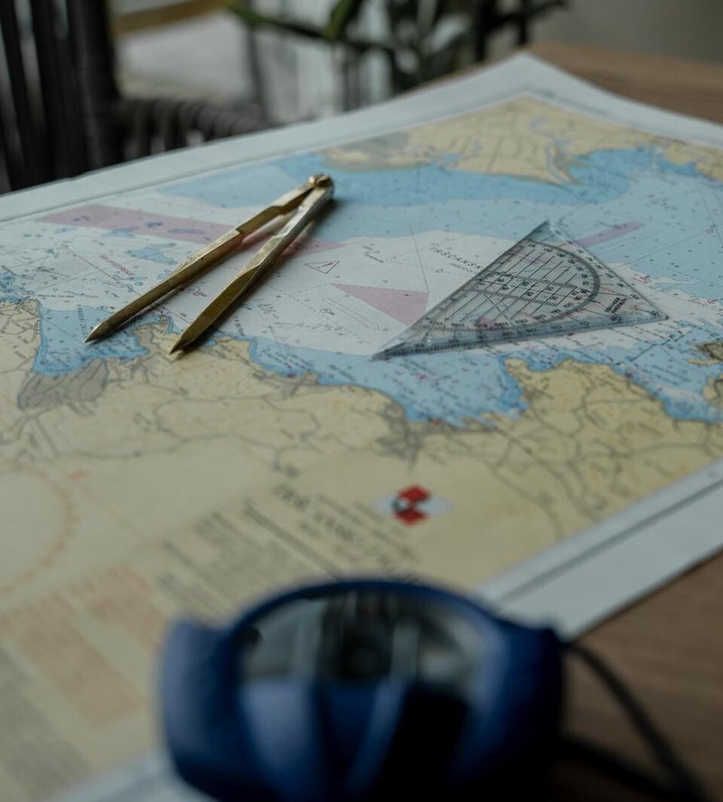 - Navigacijski pribor (2x karta, 2x geotrikotnik, 1x šestilo)